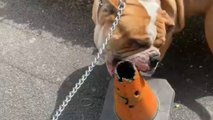 Baron, the dog, was carrying a huge rock in his mouth. His owner took him for a swim in a river from where he picked the rock.
