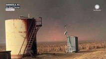 Firefighters are struggling with winds as they battle the Easy Fire in Simi Valley, California, on Oct. 30.