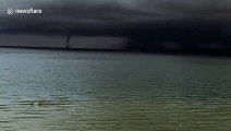 Rare double waterspout forming over the sea amazes locals in southern Thailand