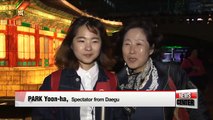 Hundreds of colorful lanterns brighten up the autumn sky as the 2019 Seoul Lantern Festival takes place at Cheonggyecheon Stream.<br />This year's event draws inspiration from fairytales,... with a wide array of lantern art pieces on show.<br />Our Eum Ji-young takes us there.<br />A flying magic carpet to save the princess from the fairytale Aladdin and the Magic Lamp lights up the Seoul sky.<br />The Little Prince and Little Red Riding Hood also welcome the guests.<br />They are just a few of the more than 70 sets of lanterns along the Cheonggyecheon Stream in central Seoul where the festival takes place every year.<br />"Unlike previous years, this year's event features widely loved characters from fairytales with a theme of 'Seoul, Your Fairy Tale' so that both guests from Korea and foreigners can relate to the festival."<br />The festival, which is in its 11th year has 1.2 kilometers of displays including eye-catching pieces from traditional Korean fairytales and key heroes from Korean history along with some of the city's iconic attractions and monuments.<br />"It's really beautiful. I really liked the lanterns because we don't do anything like this in my country.<br />I really liked the lanterns from the fairytales. I found them very beautiful and also I really liked the King Sejong sitting on the throne."<br />And there are plenty of other events for visitors to enjoy.<br />"Visitors to this year's Seoul Lantern Festival can float a wish boat along the Cheonggyecheon Stream or make their own lantern."<br />The event attracts more than 2 million people from around the globe every year.<br />"We are French bloggers in France about Korean culture so we want to promote Korean culture in France so this is why we came here because we know about this festival."<br />One of the main events on the festival calendar in Korea, this year's Seoul Lantern Festival runs until November 17th.<br />Eum Ji-young Arirang News.<br />