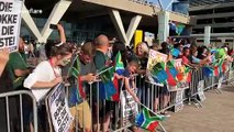 South Africans in Church Square, Pretoria, welcome the Rugby World Cup-winning Springbok rugby team in their trophy tour around the country.
