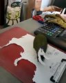 Hungry bird eats up office paper