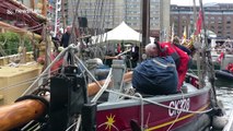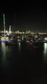 Santa sailed into St. Katharine Docks in central London to turn on the marina's Christmas lights on Thursday night (November 21).<br /><br />Father Christmas greeted cheering crowds from a speedboat converted to look like his famous sleigh, complete with reindeer on the front and presents in the back.