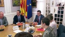 Imágenes de la llegada del Rey Felipe VI a la Lonja de los Mercaderes de València donde ha presidido la ceremonia de entrega de los Premios Rei Jaume I, a la que también han asistido el presidente de la Generalitat, Ximo Puig, y el alcalde de València, Joan Ribó. A las puertas de la Lonja, un grupo de personas han lanzado mesajes en protesta contra el monarca a su llegada al acto.