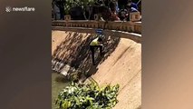 A beachgoer battled through the waves on a jet ski to save a drowning boy on a Thai island.<br /><br />Saroj Chuaykerd, 37, was at the beach when his friend shouted that there was a boy drowning in the sea in Koh Samui island, Surat Thani, southern Thailand, last Saturday (23/11) afternoon.<br /><br />Footage taken by Saroj's boss, Piyanant Jaipeam, shows the moment the brave local, who was helping out at a jet ski shop, cut through the choppy seas to pluck the boy one-handed out of the water and bring him back to the shore.<br /><br />The hero jet ski rider said that it was his duty to keep the tourists safe and warned others to be more careful, because drowning in the sea on the island is common.<br /><br />Saroj said: "I was working on the jet ski rental stand and part of my duty is to watch over the sea in case tourists have an accident while riding our vehicle or drowning.<br /><br />"I was talking to my friend when they shouted that there was a boy drowning so I rode out and helped him as quickly as I could.<br /><br />"People have drowned several times in this area of sea, so it would be better to be more careful. We will also put some red flags up as a warning to try and prevent more accidents in the future.''<br /><br />The youngster was unharmed in the incident and clambered off the jet ski before thanking the man who saved his life.