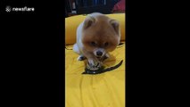 Bossy Pomeranian rings bell for food