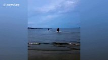 A man risked his life to save a peacock from a farm well by going down with the help of makeshift harness in southern India.<br /><br />The incident took place on October 21 in Thuraiyur town in Tiruchirappalli district of Tamil Nadu.<br /><br />The video shows the rescuer tying a rope in the form of a harness and then gradually rappelling down the well.<br /><br />As he tries to reach the downing bird, the rescuer spots a deadly snake swirling around. Momentarily frozen after spotting the venomous reptile, the man regains his composure and decided to continue his rescue mission.<br /><br />After a little struggle, the man gets hold of the drowning peacock and signals his associates to pull him back up.<br /><br />The video shows the man releasing the bird as soon as he comes out of the well.