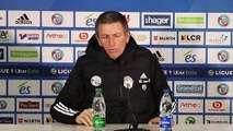 Conférence de presse GFC Ajaccio - Havre AC (1-0) : Thierry LAUREY (GFCA) - Thierry GOUDET (HAC) - 2014/2015