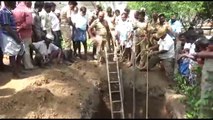 A crocodile trapped in a 45-ft deep pit was pulled out to safety after a marathon operation in the north Indian state of Rajasthan.<br /><br />The 9-foot-long reptile crawled out of the Parwan river and got trapped in the pit being dug up for construction of a road bridge at Kalmodia in Baran district on November 1.<br /><br />According to forest department officials, people working at the site informed them about the presence of a crocodile in the pit late in the night.<br /><br />The rescue team arrived the following morning at the scene and started rescue operations. The depth of the pit required the use of a hydraulic winch to lift out the crocodile. <br /><br />The driver is seen slowly and carefully lifting the beast out of the pit to avoid causing any injury to the animal in distress. <br /><br />The beast, forest rangers said, was trapped in the pit for around 17 hours and was rescued after a three-hour-long operation carried out by the joint team of Harnavdashahji, Sarthal and Aklera forest rangers and staffers.