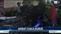 Pohon setinggi delapan meter dengan diameter 40 centimeter tumbang dan menimpa sebuah mobil yang terparkir di Bogor, Jawa Barat pada Kamis (5/12/2019). Pohon tumbang disebabkan kondisi akar pohon yang rapuh sehingga tidak mampu menahan tiupan angin.<br />Pohon Setinggi 8 Meter Tumbang Timpa Mobil di Bogor
