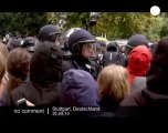Riot police in Colombia's capital Bogota have made use of a water cannon in retaliation projectiles being thrown by demonstrators in a protest yesterday (December 10).<br /><br />Demonstrations turned violent at the National University during a country-wide strike against the government.