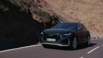 With its imposing octagonal Singleframe, the RS-specific radiator grille in high gloss black and the gloss black RS honeycomb grille, the new Audi RS Q8** sports a strikingly self-confident face. This combined with the solid side air inlets and the blade in high gloss black perfectly highlights the athletic character of the large SUV coupe from Audi Sport GmbH.<br /><br />The sloping roofline flows into the forward-canted D-pillars and rests against the quattro blisters above the wheel arches. RS-specific trim strips in the body color widen the body by 10 millimeters (0.4 in) up front and 5 millimeters (0.2 in) in the rear, providing space for the more generous track. Optional 23-inch wheels underscore the powerful appearance of the RS Q8**. The continuous RS sills come standard in Manhattan gray, which makes the body appear even more athletic. An RS roof edge spoiler provides a striking finish at the top; design highlights closer to the road are the RS-specific rear skirt with a diffuser clip in high gloss black and the RS-typical oval tailpipes. The RS roof edge spoiler provides downforce on the rear axle for even balance at high speeds.<br /><br />The new Audi RS Q8 is available in a choice of nine colors: one solid paint finish and eight metallic or pearl effect shades. The exterior mirror housings come standard in black, with body color, aluminum or carbon available as options. The aluminum and carbon styling packages set precise accents at the radiator grille, blades, diffuser clip and rear light strip (carbon only). In combination with the styling packages black and carbon, the Audi rings and RS logos at the front and rear are optionally available in black. The Audi exclusive program offers numerous additional customization options.