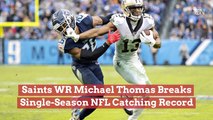 Saints WR Michael Thomas Breaks Single-Season NFL Catching Record.<br />Following the New Orleans<br />Saints' 38-28 win over the<br />Tennessee Titans on Sunday.<br />Michael Thomas has now officially<br />caught 145 passes for the year,<br />breaking the league's record.<br />The record was previously held<br />by Marvin Harrison for 17 years,<br />who recorded 143 caught passes.<br />On Twitter, Thomas received<br />praise from NBA stars LeBron James<br />and James Harden. .<br />Congrats @Cantguardmike!!!!<br />Single season reception record.<br />Breaking the record on an<br />incredible route he ran!, LeBron James, via Twitter.<br />S/O @Cantguardmike for<br />breaking the all time record.<br />Bro been puttin in crazy work<br />and it shows!!! #NFLhistory<br />LEGENDARY !, James Harden, via Twitter.<br />When asked about his<br />accomplishment, Thomas<br />said the record does not<br />mean much to him.<br />Instead, the wide receiver said<br />he would rather focus on getting<br />the playoff-bound New Orleans<br />Saints to the Super Bowl.<br />I don't take it for granted.<br />But the fact that we still have<br />more goals as a team ... as far<br />as not the individual stuff that<br />comes along with it ... I would<br />be selfish to be like, 'Oh, I just<br />caught all these passes and<br />did all this.', Michael Thomas, via 'ESPN'.<br />I just want to keep catching<br />passes and end up where we're<br />gonna be. That's ultimately<br />what I'm here to do, Michael Thomas, via 'ESPN'