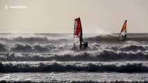 Hundreds of UK swimmers braved chilly temperatures on Christmas Day as they took a dip into the sea at Sennen Cove in Cornwall, south west of England.<br /><br />Footage showed swimmers running across the beach and jumping into the sea.