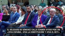 El delegado de Sánchez calla cuando Ayuso pide un: «¡Viva España!, ¡Viva la Constitución! y ¡Viva el Rey!»