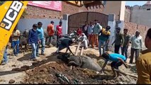 A bull which fell into a 8-foot-deep ditch in north India was rescued with the help of a rescue team using a crane to lift it free.<br /><br />According to local residents the bull fell into the 'nullah' by a Highway police station area in Mathura, Uttar Pradesh, in the early hours of January 7. <br /><br />The animal was only discovered later the same morning, with locals immediately contacting an animal rescue team to help save it. <br /><br />The team resorted to bringing in a crane to lift the bull out wholesale, allowing it to go free after safely retrieving it.