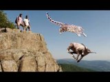 Goat Jumps To Escape From The Hunting Snow Leopard