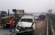At least 12 people injured in a collision between a bus and a car on Agra-Lucknow Expressway in Uttar Pradesh's Unnao district on early Saturday. At least 12 people injured in a collision between a bus and a car on Agra-Lucknow Expressway in Uttar Pradesh's Unnao district on early Saturday.