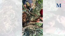 Austrian parachutist Johannes Grasser found himself dangling 250m (820ft) above ground after leaping off a mountain in Phatthalung on January 13, 2020. Rescuers were called to the site in southern Thailand to rescue the base jumper, setting up ropes so he could be lowered safely.