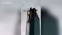 A line of storms moving through Jackson County, Missouri, wreaked havoc in the city as the strong winds blew debris and construction material around.