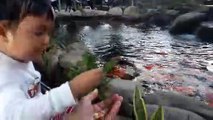 The Baby Love Toss Bread To Eating Koi Fish