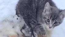 Frozen kittens trapped in ice rescued with hot coffee