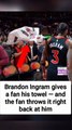 Brandon Ingram gives a fan his towel — and the fan throws it right back at him