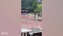 School Pupils Carry Disabled Dog From The Rain