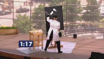 L'homme n'a même pas le temps de se retourner qu'il se fait sauvagement faucher par le jeune cerf.<br /><br />En sortant du McDonald's à Locust, en Caroline du Nord, un homme s'est fait violemment percuter par un cerf. L'homme n'a pas été blessé et n'a pas renversé une seule goûte de sa boisson.