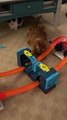 This girl was trying to take a selfie with her cat. She was trying to fix her hair and suddenly her cat started chewing them. As she funnily kept parting her hair away, her cat kept chasing and chewing them.
