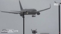 This clip shows the moment a Beluga airplane is forced to abort an attempt to land in crosswinds from Storm Ciara.