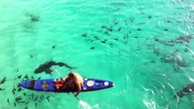Il fait du Kayak autour de requins tres agressifs