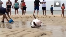 Que faire face à un requin blanc échoué vivant sur une plage???