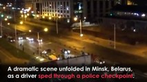 Driver Speeds Through Police Checkpoint in Minsk