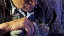 Awwww little girl is playing with her little kitty