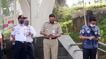 Petugas Palang Merah Indonesia (PMI) Jakarta Pusat menyemprotkan cairan disinfektan di area Masjid Istiqlal, Jakarta, Jumat (13/3).
