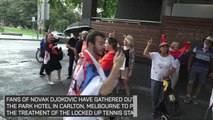 Fans gathered outside the Australian Grand Prix gates react after the postponement of Sunday's season-opening race was announced