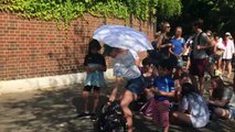 Customers queue round the corner of Savers in Wood Green, north London where toilet roll has been limited to two packs per person.<br /><br />A sign has been placed in the shop window reading: "Toilet rolls are currently limited to 2 packs per customer. We ant to ensure we can supply as many people as possible."<br /><br />This footage was filmed on March 13.