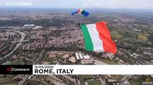 An Italian Army paratrooper has flown a giant Italian flag above the skies of Rome in a demonstration of solidarity with the country, which is in lockdown in response to the coronavirus outbreak.View on euronews</a>