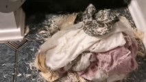 This woman hid in the bathroom, waiting for her brother. She gave him a jump scare, and he yelled in surprise. She laughed hysterically on pulling the prank on him successfully. He left amused, shortly after.