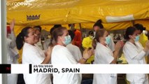 Field hospital in Madrid celebrates their first coronavirus patient being given the all-clear