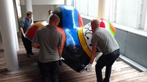 Déballage des oeuvres de Nikki de Saint Phalle au BAM de Mons