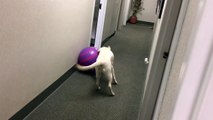 Roxy finds a beach ball in the office