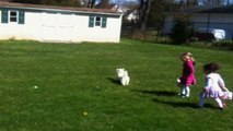 This couple living in Los Angeles, California, created their own Easter egg hunt for their dogs as they don't have any kids.<br /><br />Nancy and Jakob scatter mini bones across their backyard before letting their dogs, Bandy and Juno, search for their treats on April 12.<br /><br />Nancy, the filmer, told Newsflare: "My husband and I had an Easter egg hunt for our two dogs. We placed mini bones around the backyard for them to find them.<br /><br />"Bandy is a rescue, so I’m unsure what breed she is and Juno is an Australian Cattle and golden retriever mix. Bandy is 4 and Juno is 3."