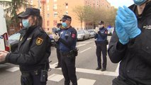 La Policía homenajea a una farmacia madrileña durante la crisis sanitaria