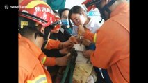 A curious toddler needed to be rescued after getting his finger stuck in a car bumper.<br /><br />The four-year-old boy, Nong Jo, followed his grandfather outside the house when he went to get some fruit. <br /><br />He was playing around the car but stuck his finger in a hole in the chrome bumper while the vehicle was parked in Loei, northeastern Thailand on Wednesday (April 15th) afternoon.<br /><br />His relatives rushed outside when they heard him crying and discovered him standing beside the car with his stuck finger in the bumper.<br /><br />They tried to help the boy by themselves at first using oil to lubricate but they could not remove the finger so they called the rescue team.<br /><br />Footage shows the rescue volunteer using a file to cut the bumper while the boy was crying. They spent over an hour there before they successfully freed the boy's finger.<br /><br />The boy's uncle Suppachai Waiprasert said they were startled after they heard the crying because they thought the boy was injured.<br /><br />He said: "The boy grandfather had went out to peel fruits the boy followed him, but he was busy on his thing and let the boy play alone.<br /><br />The boy was completely unharmed in the incident.