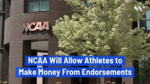 NCAA Will Allow Athletes to <br />Make Money From Endorsements The decision, made by the NCAA’s <br />board of governors, will go into <br />effect by January 2021 at the latest. Big East commissioner <br />Val Ackerman, via Yahoo Athletes will now be able to work with <br />companies to promote their businesses and <br />retain marketing agents to handle deals. Schools will be kept separate with <br />guardrails in place to prevent boosters<br />during the recruiting process. The legislation must still clear <br />a vote at the NCAA Convention, <br />though board approval makes <br />the chances high. Companies previously had to <br />strike deals with individual <br />programs, head coaches <br />or the NCAA.