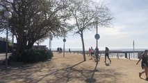 Vecinos hacen deporte cerca de la playa en Barcelona