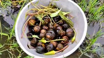 Collecting snails from wetlands in rain and cooking ।। Snail recipe ।। how to cook snails