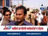 A car of AAP's Tughlakabad assembly poll candidate Sahi Ram was today set ablaze and at least 12 people were injured in a clash between supporters of Aam Aadmi Party and BJP activists during the shoot of News Nation's debate show Meri Dilli in which leaders of both the parties were engaged in a heated argument.